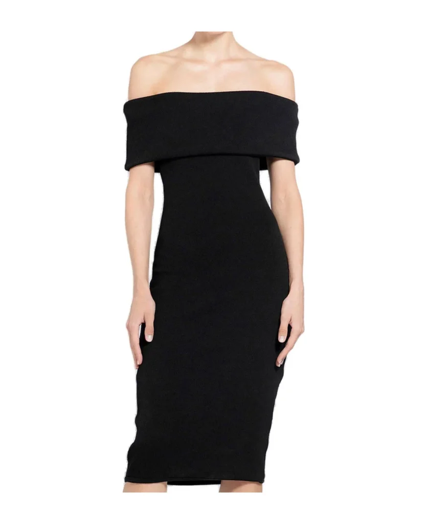 Bottega Veneta Off-the-Shoulder Fitted Dress: Bottega Veneta knows how to make a woman feel sexy and sophisticated. The off-the-shoulder design and fitted silhouette are incredibly flattering. This Bottega Veneta stunner is perfect for a glamorous hotel wedding or a high-end restaurant reception.